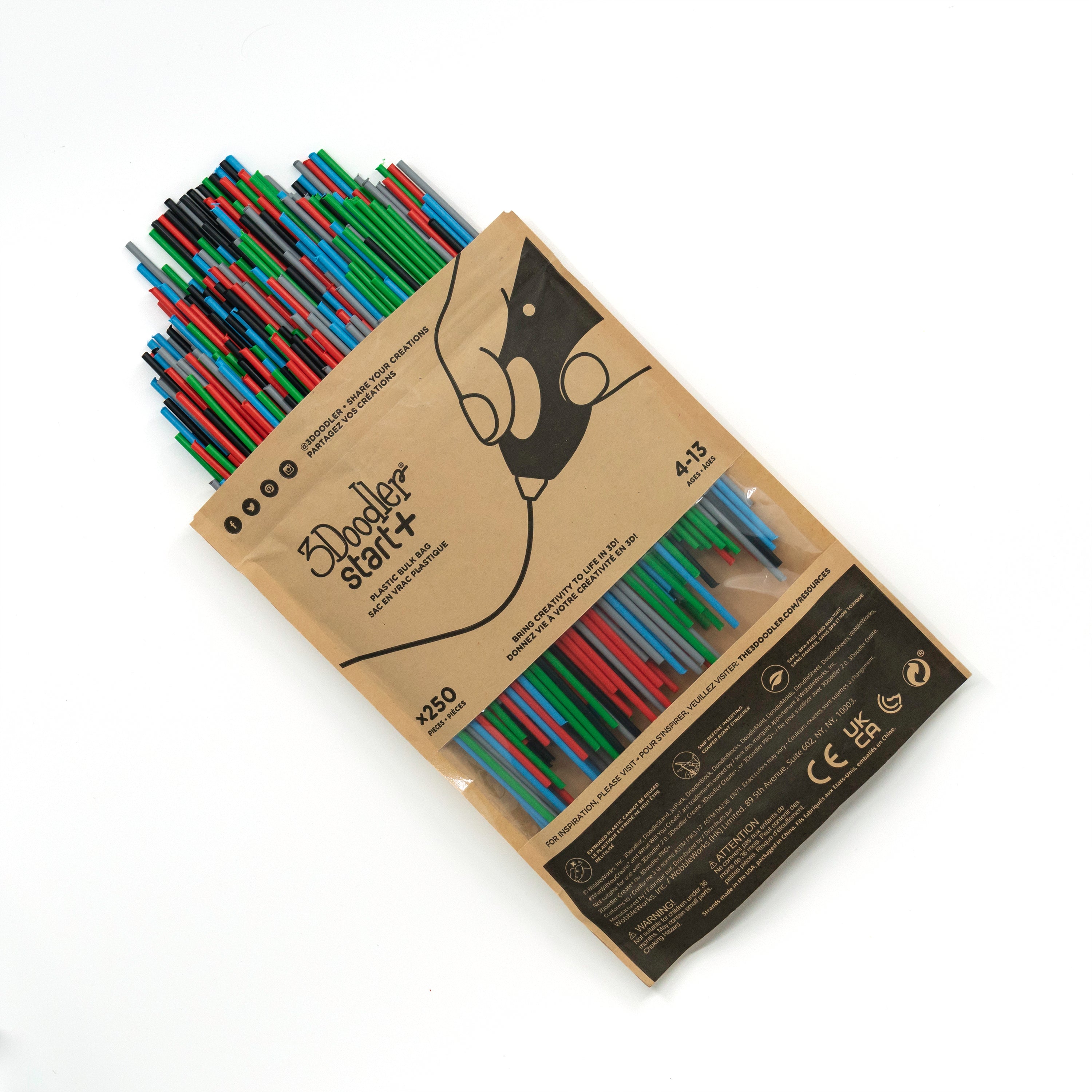 Unlock endless creative possibilities with the 3Doodler Start+ Primary Pow! Filament Refill Bag, featuring 250 strands of premium eco-friendly filament. Each strand extends up to 89 cm, delivering exceptional value and hours of imaginative play. Engineered with safety as the priority, this low-heat, BPA-free, non-toxic filament meets the highest standards for children's products. The biodegradable material adheres to virtually any surface while remaining easily removable, making cleanup effortless. Perfect for young creators aged 4 and up, this refill pack ensures your child's 3D doodling adventures never run dry.