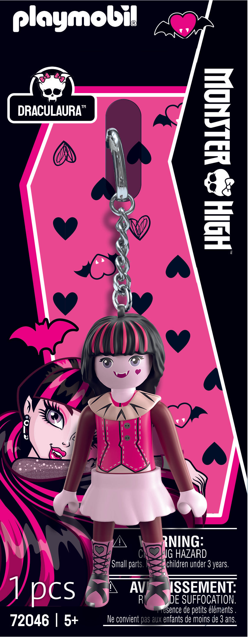 Bring a dash of vampire flair to your day with Draculaura’s unmistakable charm. Her playful colours, heart-themed details, and adorable style make her a delightfully spooky companion. Clip her on to carry a little Monster High™ magic on every adventure!