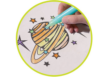 The easy-to-use pens allow children to create unique glow-in-the-dark designs. Simply draw or write, charge the colours under light, and watch them glow at bedtime. The pens provide an embossed, colourful finish, and for best results, leave creations to dry overnight. Protect surfaces and wear old clothing while using, as the colour does not wash out. Wipe any spillages immediately with a damp cloth.