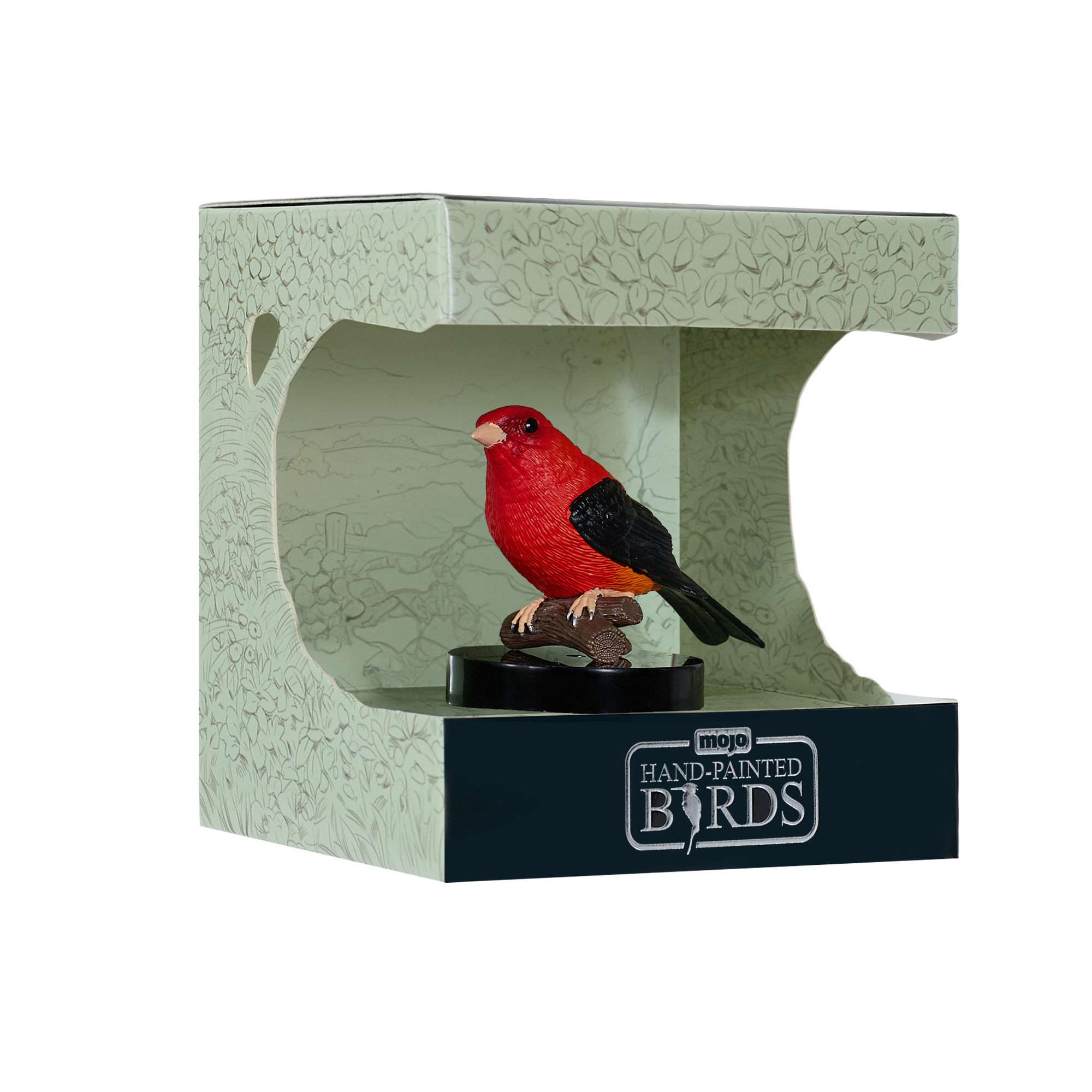 Experience the breathtaking beauty of one of North America's most stunning songbirds with this exquisitely detailed Scarlet Tanager figure from Mojo. Presented in an elegant gift box, this hand-painted figurine captures the brilliant scarlet plumage and striking black wings that make this bird a true jewel of the forest.