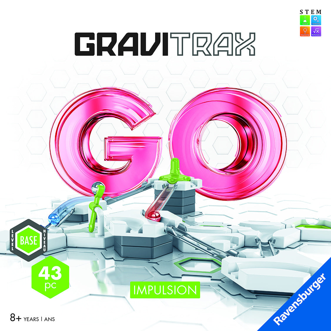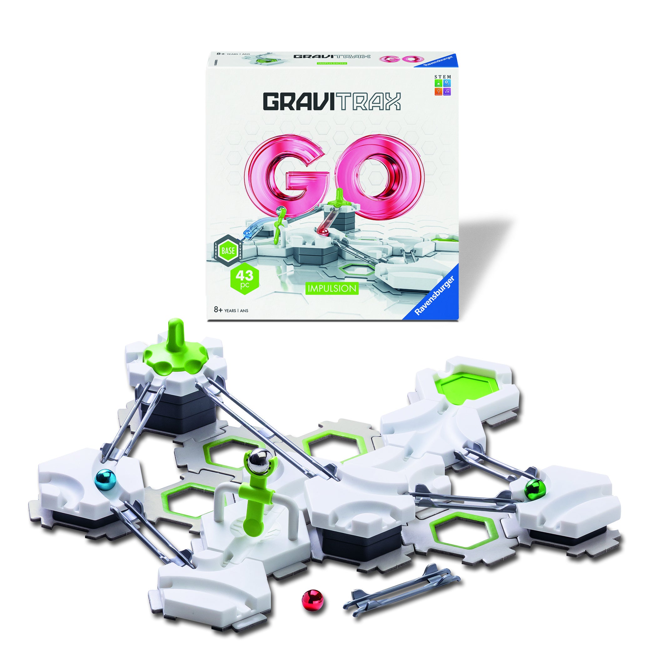 Small starter set to get to know GraviTrax. GraviTrax GO contains everything you need to build your first ball tracks, including the Hammer action element.