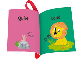 Learn about opposites together with this baby book designed for fun wherever you are! With untearable and waterproof pages, it's suitable for even the most adventurous explorers - whether you're playing indoors or outdoors or even at bathtime. The brightly coloured pictures and words on each page will fascinate baby, and the play doesn't end there: the little pop-its are great to keep small hands busy, and the silicone teething edge will help soothe sore gums. Flip & Pop: Opposites has a handy hanging loop, making it a great activity for on-the-go.