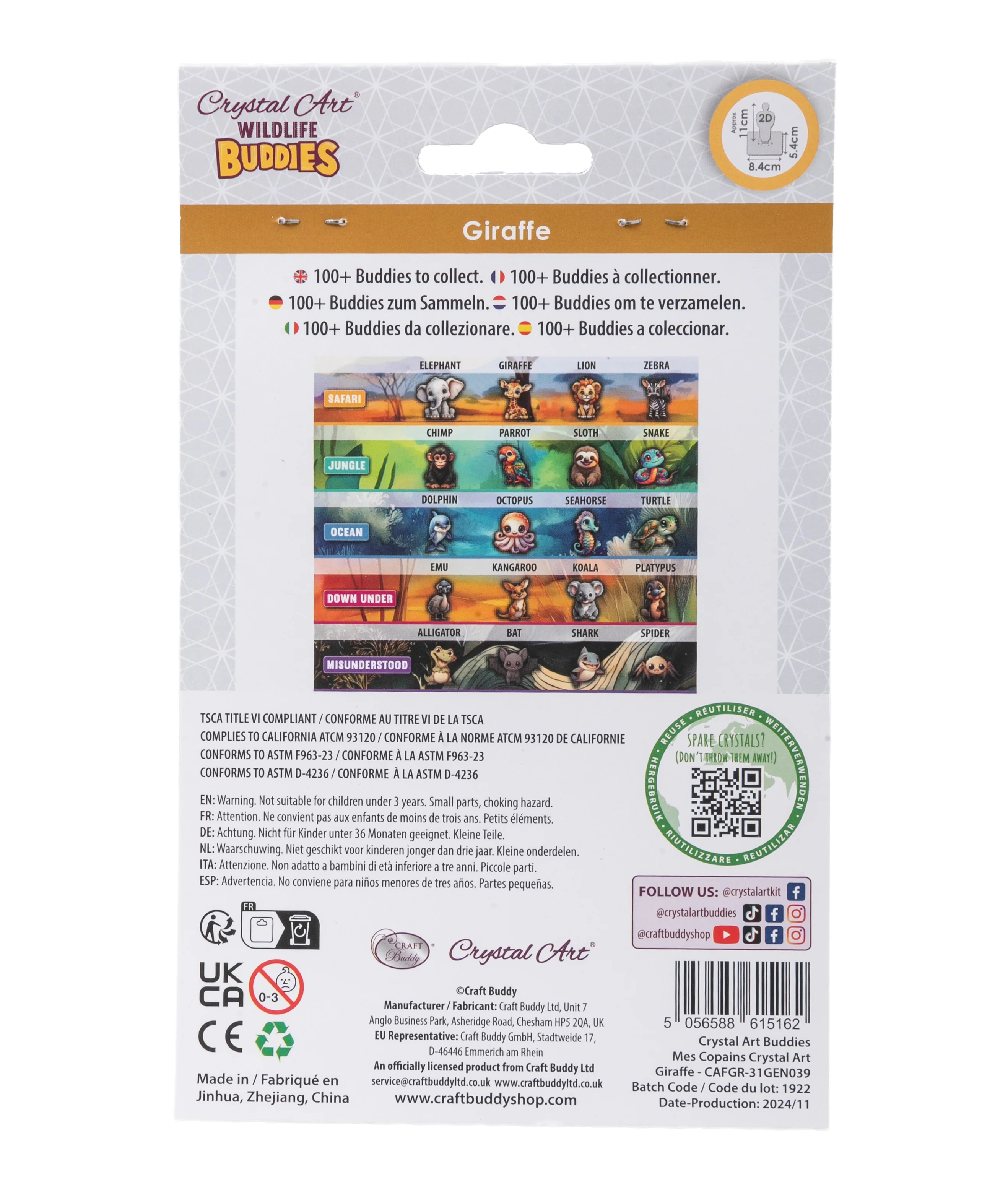 Discover the intricate craftsmanship of CrystalArt’s Wildlife Buddies series with the Giraffe design. This collectible piece showcases expert detailing that captures the graceful elegance of the giraffe, making it a refined addition to any collection. Perfectly suited for enthusiasts seeking a sophisticated display, it combines artistry and precision to highlight wildlife beauty in crystal form.