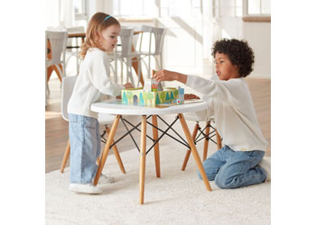 With this game, children learn different shapes, colours, and how to count. Game includes: 3D board, 4 Characters, 1 flag and 3 wooden dice