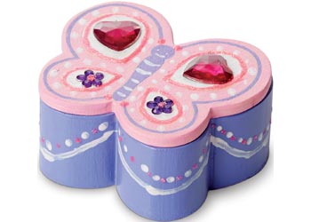 This special little box will glitter and flitter into children's imagination! Includes a sturdy wooden butterfly-shaped box (3.1 x 1.4 x 2.6 in.), glitter glue, white glue, colourful gem stickers, 4 pots of paint and a paintbrush. A perfect activity for parties or rainy days.