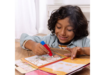 No-mess Water WOW! painting for kids now smells delicious! This exciting scented paint-with-water colouring book includes five reusable pages and a refillable water pen. Use the pen to colour in each scene and scents, details, and vibrant colours appear with every stroke! Let the page dry to erase the pictures and colour it in again and again. This fruit-themed spiral-bound book includes five scent-filled scenes to colour (watermelon, peach, cherry, banana, strawberry) and search-and-find activities for each scene. The chunky-sized water pen is easy to hold and stores neatly right in the front cover, making this scented Water WOW! an ideal activity book and travel toy for kids! Use the refillable chunky water pen to colour with water and release delicious smells and vibrant colours on 5 spiral-bound fruit-scented colouring boards (watermelon, peach, cherry, banana, strawberry) Reusable pages are white with simple line drawings when dry; reveal delicious-smelling scents, colours, patterns, and scenes when wet Chunky-sized water pen is easy to fill, easy to hold, and stores in the compact, spiral-bound book, a great mess-free travel activity Promotes creativity, fine motor skills, early writing and reading skills, colour recognition, and storytelling Makes a great gift for girls and boys, ages 3 to 6, for hands-on, screen-free, sensory play 70% paper, 18% plastic, 10% ink, 2% felt