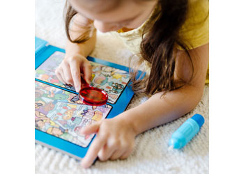 Discover the magic of mess-free creativity with the Melissa & Doug On The Go Water WOW! Around Town Deluxe — a reusable paint-with-water and seek-and-find activity book that brings every scene to life! With eight reusable pages, a refillable water pen, and a special red lens, kids can reveal vibrant colours and hidden details as they explore busy town scenes. Once the pages dry, the colours disappear, allowing for endless painting fun. The chunky water pen and red lens fit neatly into the front cover, making this the perfect travel toy for imaginative, on-the-go play.