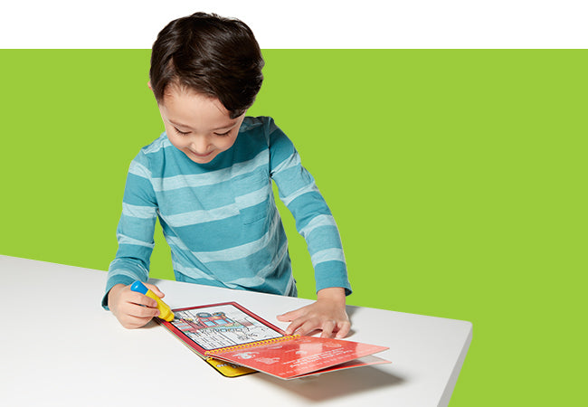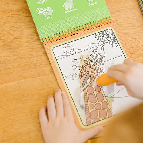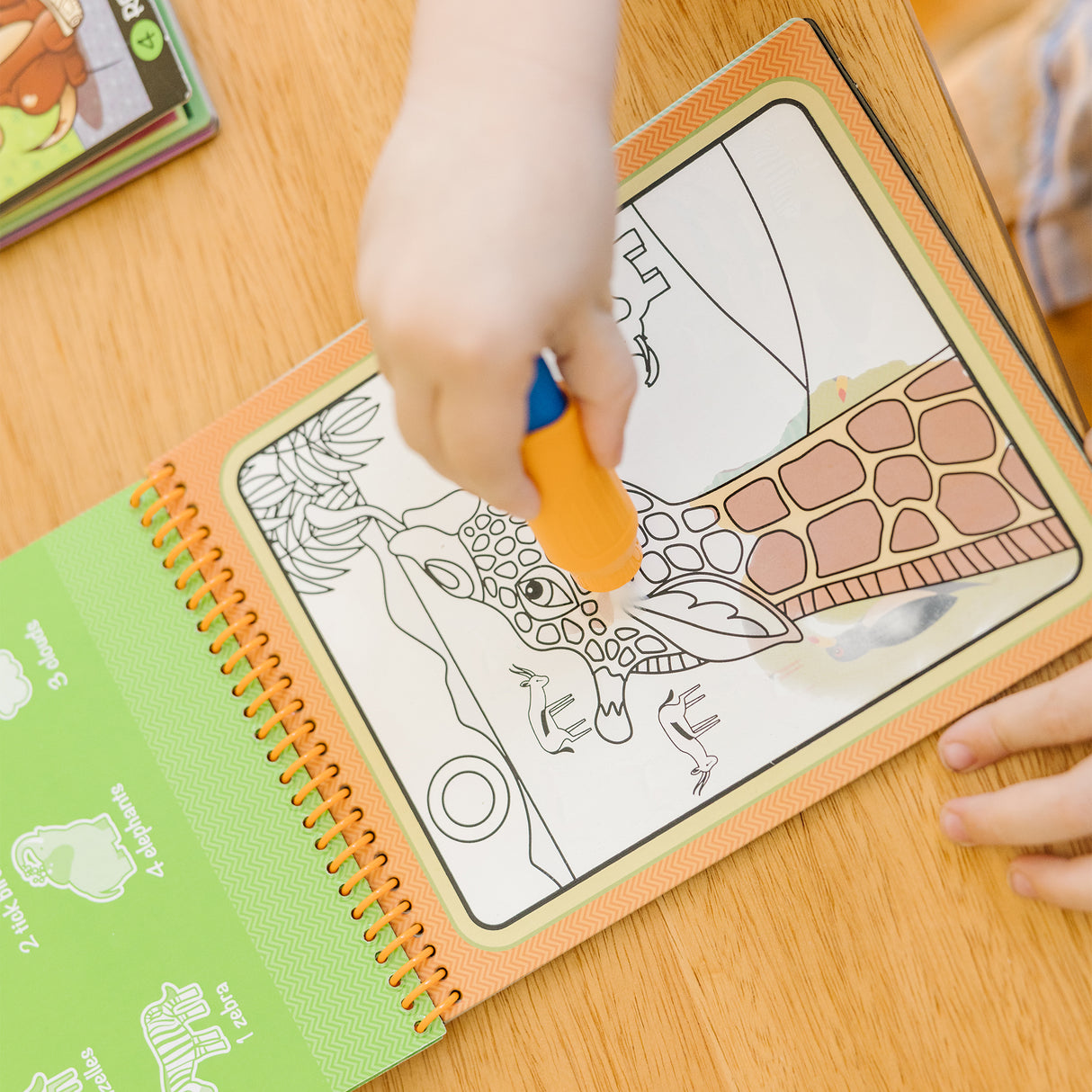 No-mess painting for kids! This exciting paint-with-water colouring book includes four reusable pages and a refillable water pen. Simply use the pen to colour in each scene--details and vibrant colour appear with every stroke! Then let the page dry to erase the pictures and fill it in again and again. This vehicle-themed book includes four scenes to colour and a search-and-find activity for each scene. The chunky-sized water pen is easy for kids to hold and stores neatly right in the front cover, so Water WOW books make ideal travel activity books and travel toys for kids!