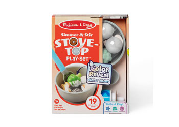 Satisfy hungry imaginations with Melissa & Doug Water WOW! colour-changing play food stir fry! Drop play food into the pot or onto the stovetop griddle, squeeze water from the spoon or drip from the olive oil bottle, and watch colours change as food magically “cooks”! Little chefs can pretend to simmer mushrooms, carrots, and broccoli, sauté chicken, shrimp, and beans, and steam double-sided disks of rice, soup, spaghetti, and mac and cheese. Let the pieces dry and cook with water again and again!