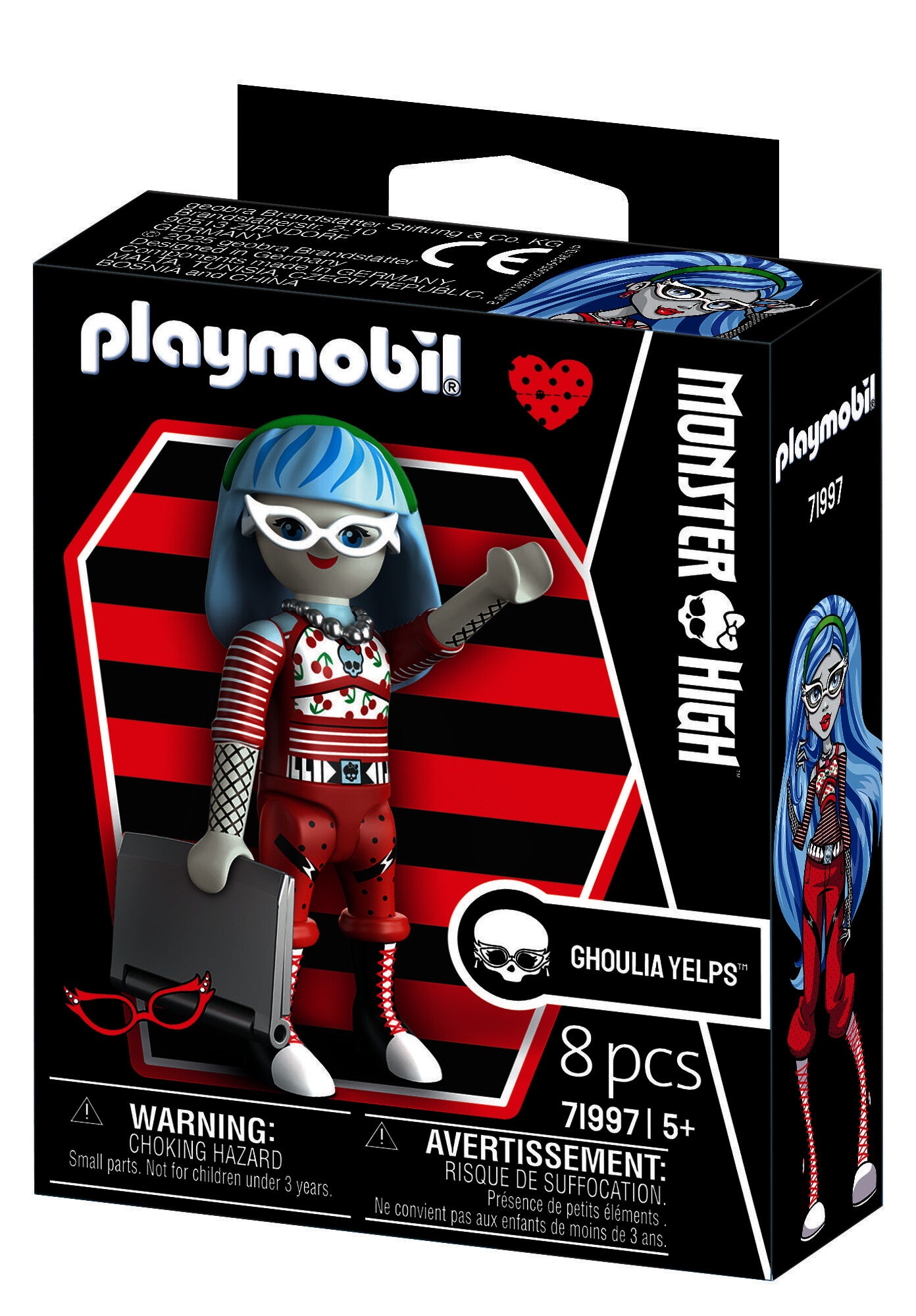 Ghoulia Yelps: Brains, beauty, and Playmobil charm! Ghoulia Yelps arrives with her iconic glasses, signature blue streaks, and a ghoul-tech laptop that’s always on standby. Perfectly articulated for posing and storytelling, she’s a must-have for collectors who love a smart addition to their shelf.
