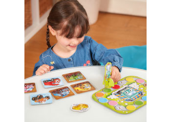 Race to clean all your mucky trucks in this first colour game A fun and simple colour game for 3-6 year olds The winner is the first player to turn over all their trucks and make them clean! Watch out for the mud splat that will make your truck dirty again Players race to be the first to get their mucky trucks clean! Roll the dice and move the elephant playing piece around the car wash playing board. Land on a colour, and make your corresponding coloured truck sparkly clean - land on a mud splat and bad luck, your truck becomes dirty again! The winner is the first player to turn over all their trucks to make them clean! Players will develop colour recognition and turn taking skills in this engaging colour game. Designed for ages 3-6, Mucky Trucks will be the first choice for budding vehicle lovers! Educational Benefits: Encourages colour recognition Develops Matching and Memory Skills Contents: 24 truck cards 1 sponge card 1 two-piece board 1 elephant playing piece 1 dice 1 instruction leaflet Ages 3-6 Players 2-4