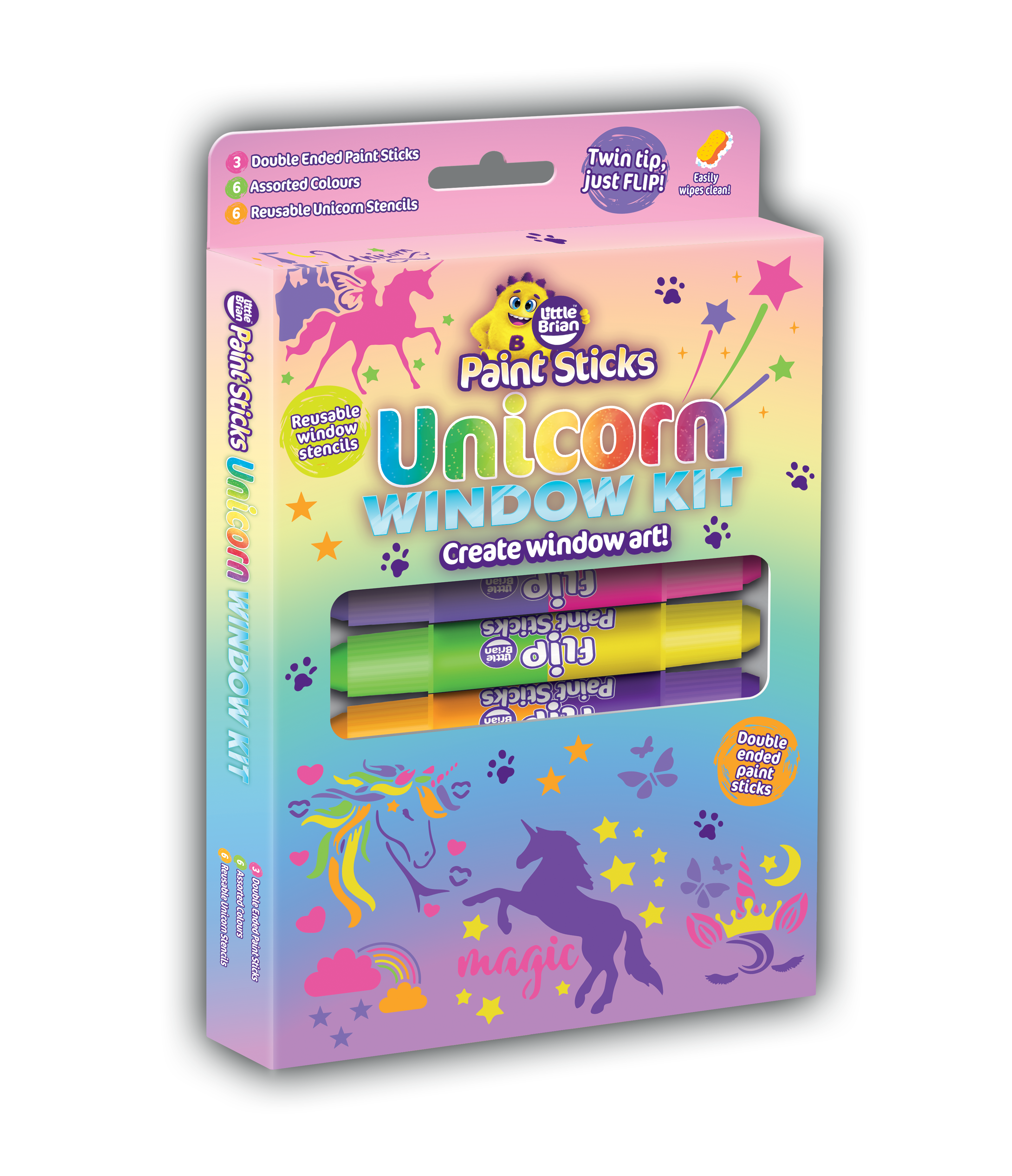 Transform your windows into a magical unicorn wonderland with Little Brian Paint Sticks Window Kit. This creative set features vibrant, washable paint sticks perfect for decorating glass surfaces with enchanting unicorn designs. Easy to apply and simple to remove, it's ideal for kids who love imaginative play and seasonal window art. Brighten any room with colourful, reusable fun that sparks creativity and brings joy to your home.
