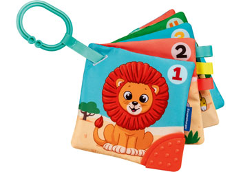 Enjoy early counting and colour fun with My First Book: Numbers and Colours. Each of the five double-sided pages in this soft book includes multisensory features to discover and explore. A soft silicone teething edge is ideal for soothing sore gums and baby will love to see reflections in the little mirror. The ribbons on the side of the book will be fun for baby to reach for and grasp while the high-contrast colours throughout will keep baby entertained. The handy clip makes it easy to take playtime with the My First Book: Numbers and Colours on the go too.