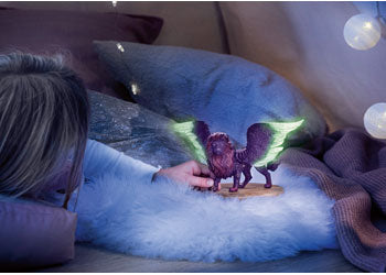 The Moon Lion is the lord of the night in BAYALA. His dark fur is adorned with purple and gold stars and even the tip of his nose shines gold. His lush mane flows around his head. It even glows in the dark! But his wings are the most magnificent. Just a few wing beats and he is lifted high into the air. This schleich product is part of the BAYALA theme world and is suitable for children aged between 5 and 12.