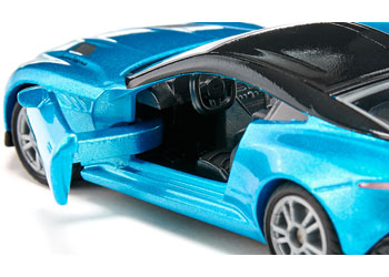 British secret agent 007 loves the legendary British luxury sports car from Aston Martin, which combines elegance and sports performance in a unique fashion. The DBS Superleggera top model of the British sports car manufacturer comes equipped with a V12 engine, and therefore more than 700 HP. Thanks to its metal bodywork with doors which open, sport rims with rubber tyres, and its ice-blue colour, the speedster injects a hint of British nobility into the playroom