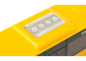 The very elaborate 1:50 scale bus model of the original MAN Lion's City now comes in a striking yellow design. The details are impressive with wheels with rubberized treads, twin tyres and two doors on the right-hand side of the vehicle that can be opened. The same applies to the engine hatch at the rear. The tinted windows, separate rear-view mirrors and the inset radiator grille give the model an authentic look. The plastic front and rear lights and the roof structure with air conditioning round off the high-quality appearance.
