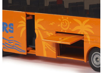 Siku is reknown for their realistic replica vehicles. Each die-cast model is made to exacting standards and exceptional quality, and feature realistic detailing. En route to holiday sun by coach. The new Travego from Mercedes-Benz brings passengers and luggage safely and comfortably to sunny beaches. It is easy to get in and out of the bus through the doors which can be opened elegantly. Luggage is stored in the case compartment which is accessible on the right and left via large opening doors. The six rubberised tyres, fitted on three axles, ensure a smooth drive. The colourful and sunny bus paintwork reflects the joyful holiday anticipation. This bus model is also used by the German National Soccer Team. Ages 3+ years