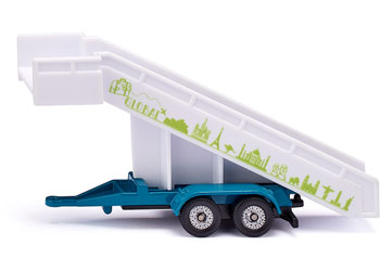 Siku is reknown for their realistic replica vehicles. Each die-cast model is made to exacting standards and exceptional quality, and feature realistic detailing. Ready for take-off: SIKU airport setThe new SIKU airport set consists of a four-jet commercial aircraft, a catering vehicle for the onboard meals, a trailer with passenger steps, an airport tractor, and a luggage trailer. The height of the luggage trailer can be adjusted. This makes loading the front and rear flaps easier. The brightly coloured suitcases can be opened and closed. The passenger steps made from metal and plastic can also be attached to the airport tractor. But where do the planes take off and land? The set includes a five metre long roll of tape. This is printed with typical markings for take-off and landing runways. The airport set is an ideal complement to the new SIKUWORLD commercial aircraft. Ages 3+ years