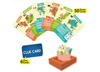 EXCITING GAME OF QUESTIONS Ask up to 10 questions to guess the country on the Game Card! Is it a part of the SAARC countries, Is it landlocked, Is it Nepal? Think hard, ask intelligent questions, use your clue cards wisely, and the be the first player to win 7 Game Cards!