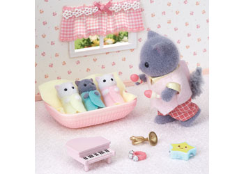 Meet the Sylvanian Families Persian Cat Triplets, pack includes Blair, Blake and Brianna.Blair Persian is mischievous and likes to pull on the ribbons of her sisters dress.Blake Persian loves the smell of mint and the sound of leaves moving in the wind.Brianna Persian is growing up the quickest and was first to roll over while asleep.Baby basket included, other accessories sold separately.