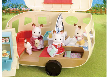 The Sylvanian Caravan has everything needed for staying away from home on a holiday! With over 30 accessories including sink, stove, drawers, cupboards and even a fold out ironing board, the caravan is ideal for those travelling holidays around Sylvania. The caravan can be towed by any Family Car which is sold separately. Figures not included.
