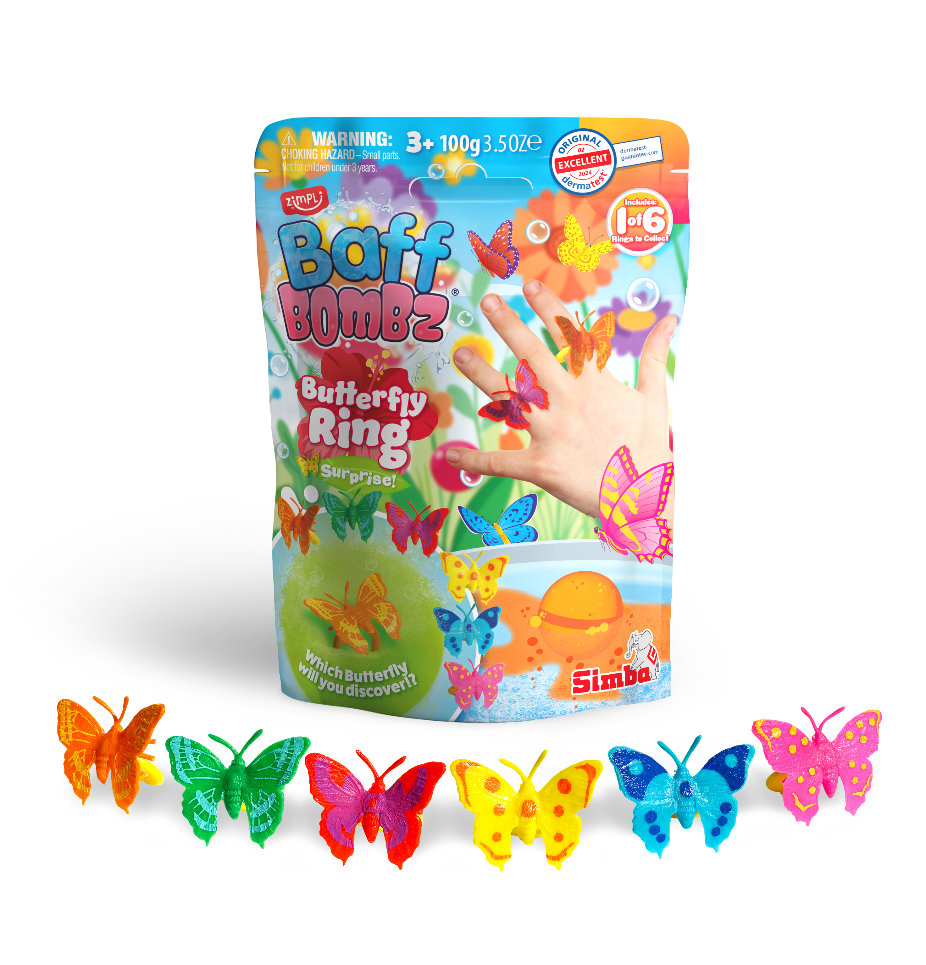 - 6 colourful butterfly rings to collect