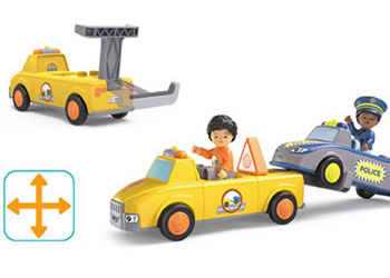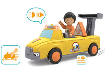 Chris and Carry are quickly on the spot if Oldy comes to a stop, or another Toddys team has a breakdown. The bright yellow towing team is visible from far away. They are both well equipped and are tireless in their efforts to pick up their friends wherever they are. Chris and Carry come with loud hooting and the yellow light flashing. At the scene, Chris first protects the danger spot with his really prominent warning triangle. He asks what has happened and closely inspects the vehicle. If Chris cant fix the damage on the spot, he folds down Carrys super towing bracket, and securely attaches the broken-down car behind him. Now he just has to quickly collect his warning triangle and insert it again. And then its off to the next workshop to make the car fit again. Exciting, top quality toy for children from 24 months and upwards, with friction motor (flywheel motor) to encourage fine motor skills, perseverance, patience, and for having fun.