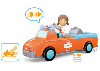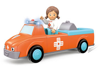 When Anna and Amby's emergency phone rings, urgent help is needed! Anna activates the siren, and the striking red Amby speeds to the scene with flashing blue lights. Upon arrival, Anna assesses the patient and promptly provides first aid, often alleviating pain quickly. The patient is then placed on Amby’s ultra-soft stretcher, which features an adjustable backrest for transport in either sitting or lying positions. After securing the patient, Anna returns to the driver’s seat, and together they head to the nearest hospital. Once their mission is complete, Anna and Amby prepare for the next call. This high-quality toy, suitable for children 24 months and older, incorporates a friction motor to promote fine motor skills, patience, and persistence. The Anna figure features movable head, arms, and legs, while the Amby vehicle separates into three parts and is compatible with other Toddys vehicles. With light and sound effects, a foldable cushion for varied transport, and the siku Click and Play® system, this robust toy offers endless engaging play and developmental benefits.