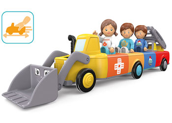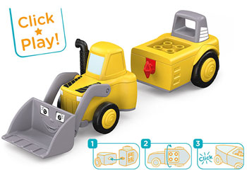 Luke and Loady, the yellow wheeled loader, are a really strong team. Their motto is: Let's get stuck in! On with the helmet, and off we go! The two of them have no trouble at all tackling a huge pile of stones or sand. They are happy when all their friends in the Toddys world can travel safely and there are no potholes which could cause accidents. Luke rolls up his sleeves and gives Loady a hand wherever he can. There's a hole in the road, so Loady fills it with sand and gravel using his super shovel to repair it. Luke jumps in behind the controls, and the two of them drive several times over the filled hole in order to compact it. Brilliant! The hole has now been filled, and the two proudly inspect their work. And now it's off to the next construction site.Exciting, top quality toy for children from 24 months and upwards, with friction motor (flywheel motor) to encourage fine motor skills, perseverance, patience, and for having fun. The Luke play figure has movable parts: The head can be turned, the arms can be raised, and the legs can be bent. The Loady vehicle can be divided into two parts and combined with other Toddys vehicles. The movable shovel and the trailer coupling also stimulate the play experience. Luke Loady is compatible with components from other manufacturers. siku Click and Play system: Easy to combine thanks to the twist-and-push system of the vehicle parts; this encourages motor skills and ensures long-lasting playing fun. Robustly built in siku quality.