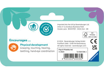 This cute piranha with snuggly plush body is the perfect fishy friend to keep baby entertained. The soft silicone tail is ideal for soothing sore gums and the pop-it features will keep those little hands busy. The rattle ring is easy for baby to grasp and shake, and the bright, contrasting colours offer engaging visual stimulation. Pop-it Piranha is a loveable friend for anytime play, and the handy clip makes it easy to take the fun along wherever you go!