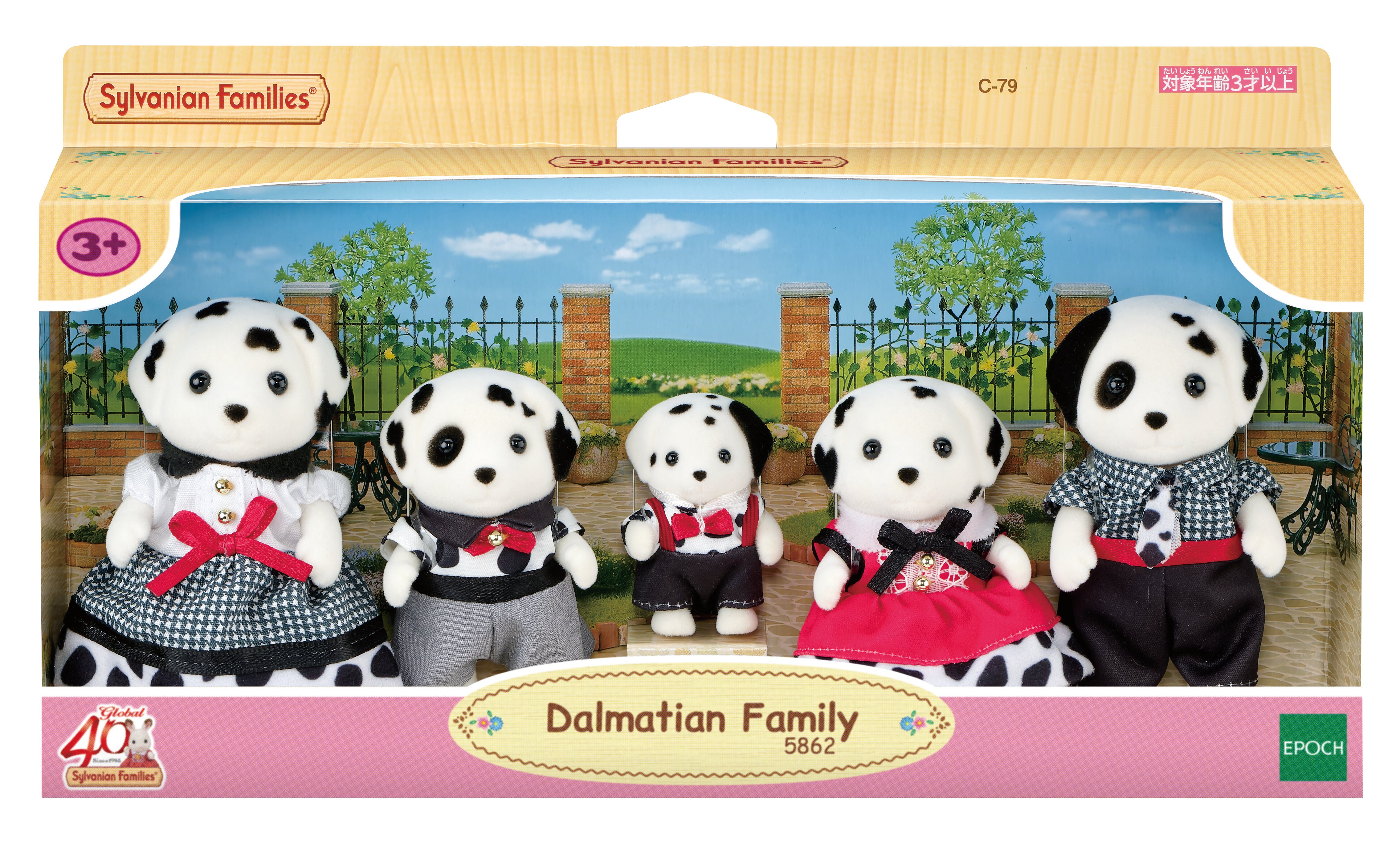 Meet the Dalmatian Family! Set includes father Paul, mother Phoebe, brother Mark, baby Karl and sister Scarlett.