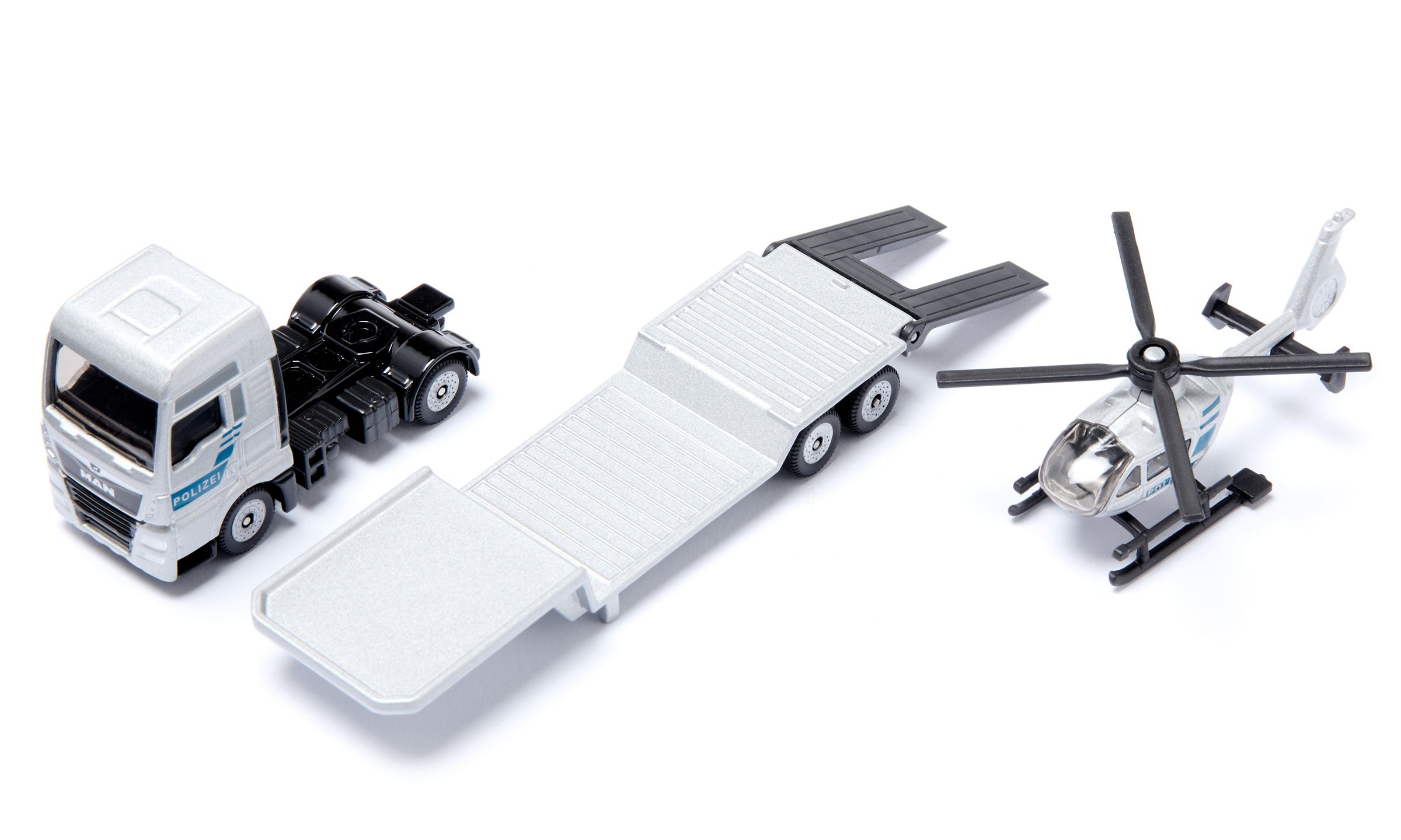 Experience dynamic emergency response play with the Siku MAN Truck and Police Helicopter set. This detailed die-cast model features a sturdy MAN truck paired with an authentic police helicopter, perfect for imaginative rescue scenarios and action-packed adventures. Ideal for collectors and young enthusiasts aged 3+, these precision-engineered vehicles showcase realistic detailing and durable construction. Combine with other Siku models to expand your fleet and create endless storytelling possibilities. A must-have addition to any toy vehicle collection.