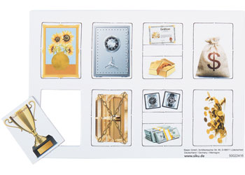 Armoured steel crew compartment, a powerful 4x4 LKW chassis, and the very latest protection technology - the Rheinmetall Survivor money transporter is a special vehicle in a class of its own. After all, it is intended for important special deployments and for the transport of especially valuable or sensitive loads. Whether banknotes, jewellery, important works of art, or controversial documents - in the armoured crew steel compartment the exclusive load is 100 percent protected. The money transporter from siku comes in unobtrusive metallic blue, and the logo "Global Security" is applied to the sides. The doors on both sides and at the rear can be opened. With the sheets of stickers provided, the vehicle can be configured even further, for example with "Transport of money and valuables" and "Monitored by GPS" in various languages. For especially realistic playing fun, the set also includes four small gold bars and four cardboard sheets with further play components. These display various loads, such as bags of money, cash boxes, paintings, and certificates. The preprinted components can simply be pressed out of the cardboard sheets and stowed in the transporter. Special highlight: Two of the cardboard sheets are preprinted, and the other two include only the outlines, so the individual components can be coloured and creatively designed by the user.