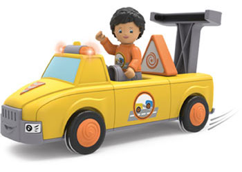 Chris and Carry are quickly on the spot if Oldy comes to a stop, or another Toddys team has a breakdown. The bright yellow towing team is visible from far away. They are both well equipped and are tireless in their efforts to pick up their friends wherever they are. Chris and Carry come with loud hooting and the yellow light flashing. At the scene, Chris first protects the danger spot with his really prominent warning triangle. He asks what has happened and closely inspects the vehicle. If Chris cant fix the damage on the spot, he folds down Carrys super towing bracket, and securely attaches the broken-down car behind him. Now he just has to quickly collect his warning triangle and insert it again. And then its off to the next workshop to make the car fit again. Exciting, top quality toy for children from 24 months and upwards, with friction motor (flywheel motor) to encourage fine motor skills, perseverance, patience, and for having fun.